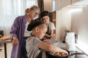 With a warm heart and these safety tips in mind, you’re ready to cook with your grandchildren in a way that is both safe and joyful. Sure, you might end up with a little flour in your hair or some extra dishes to wash, but you’ll also create laughter, pride, and memories money can’t buy. The kitchen is a place where generations can come together – where a grandma’s secret ingredient is love, and a grandchild’s giggle is the sweetest dessert.